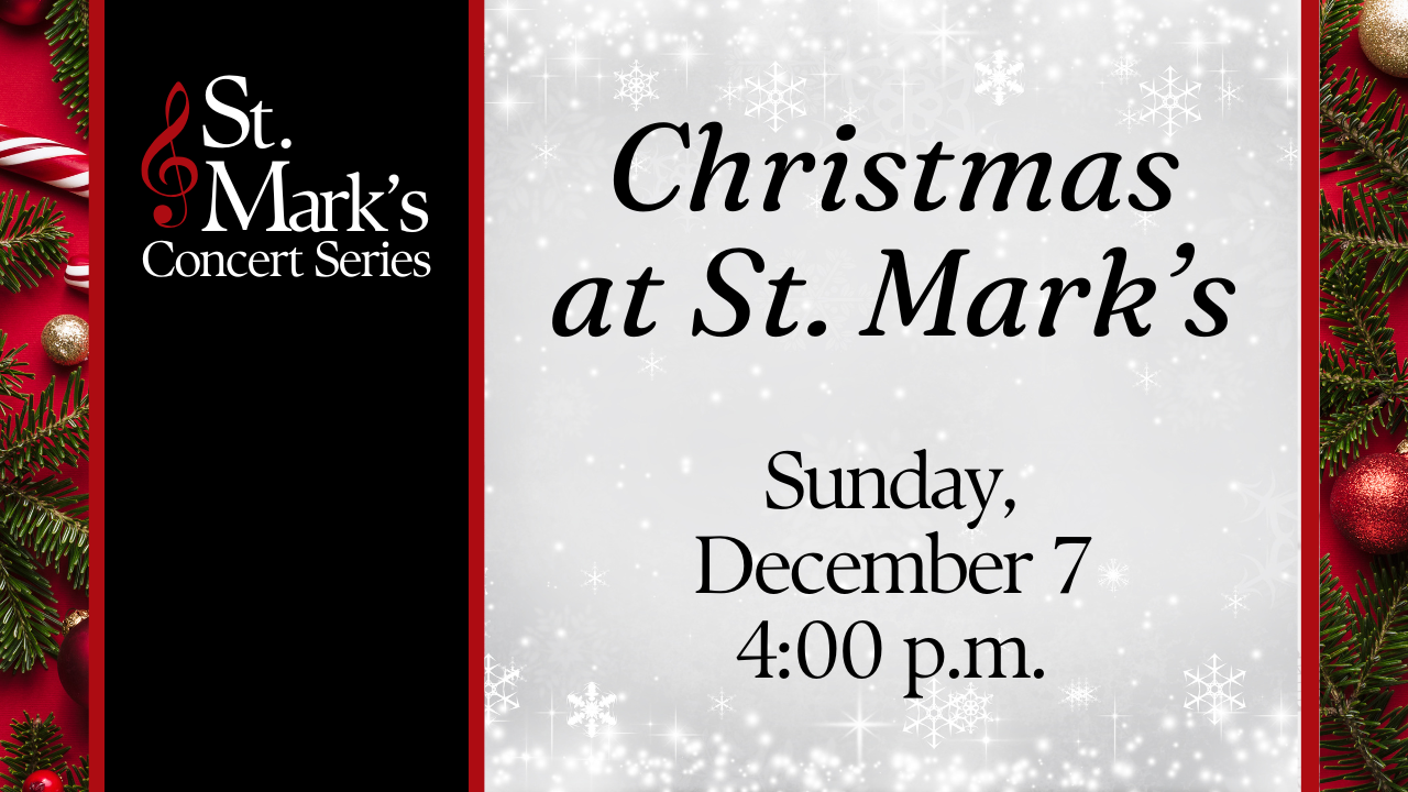 Every month from October through June, St. Mark’s hosts monthly concerts that are free and open to the public. Our goal is to offer the community a variety of quality performers and genres of music.